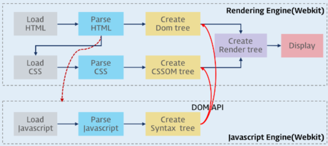 3. 렌더링 엔진 : 요청한 콘텐츠를 표시. HTML을 요청하면 HTML과 CSS를 파싱하여 화면에 표시함.