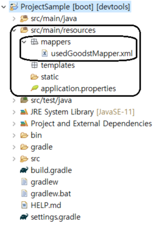 src/main/resources 밑에 mappers package를 만들고 *Mapper.xml로 지어 사용한다.