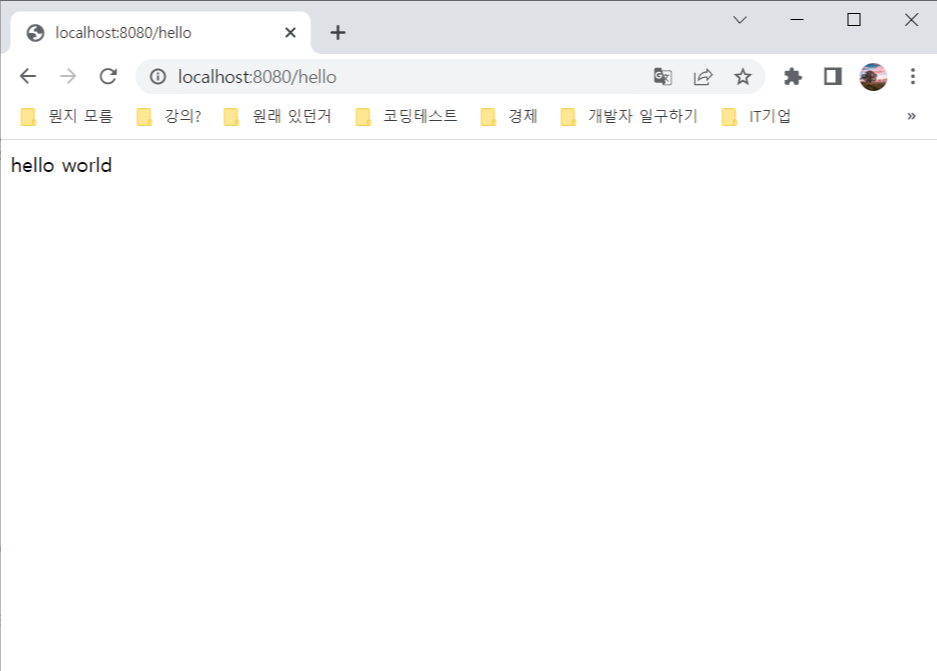 웹 브라우저 주소창에 http://localhost:8080/hello 를 입력
