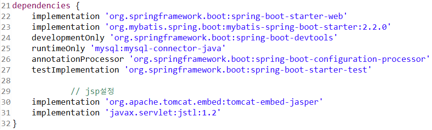 필요한 라이브러리들을 검색해서 dependencies에 코드를 추가하고,