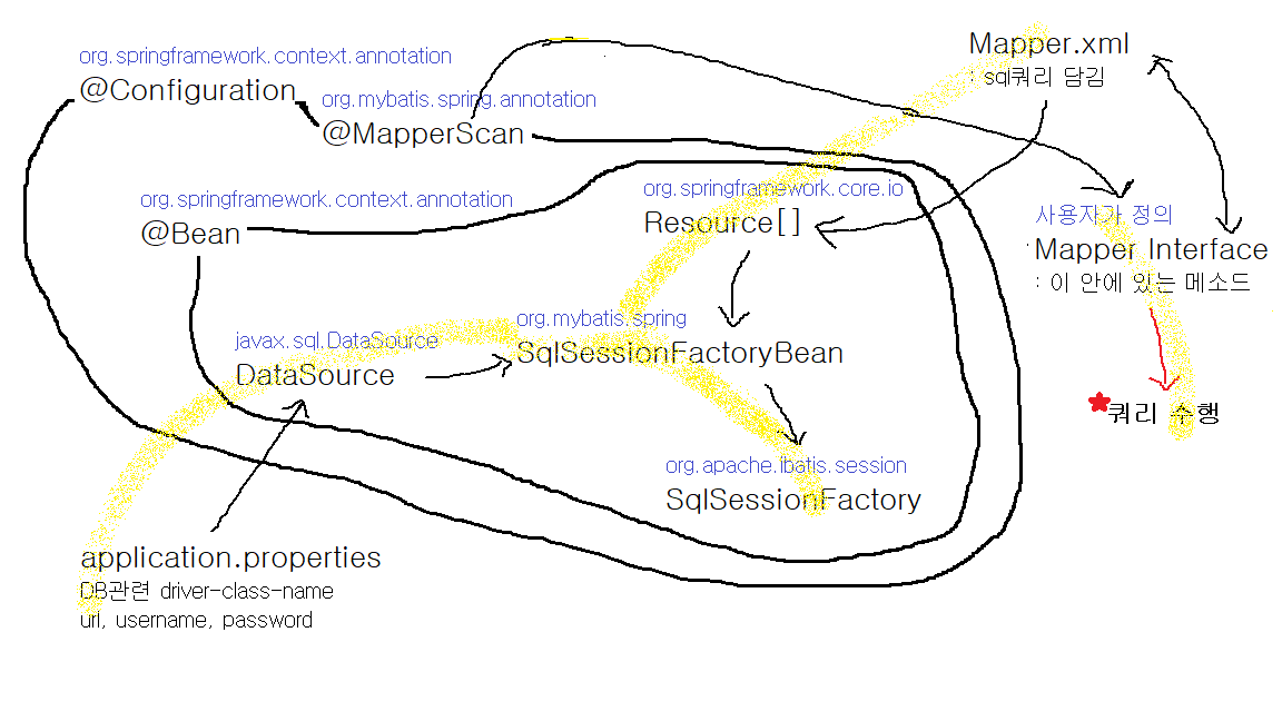 ( @Mapper 어노테이션을 사용하여 빈으로 등록, Service단에서 Autowired 하여 사용 )
