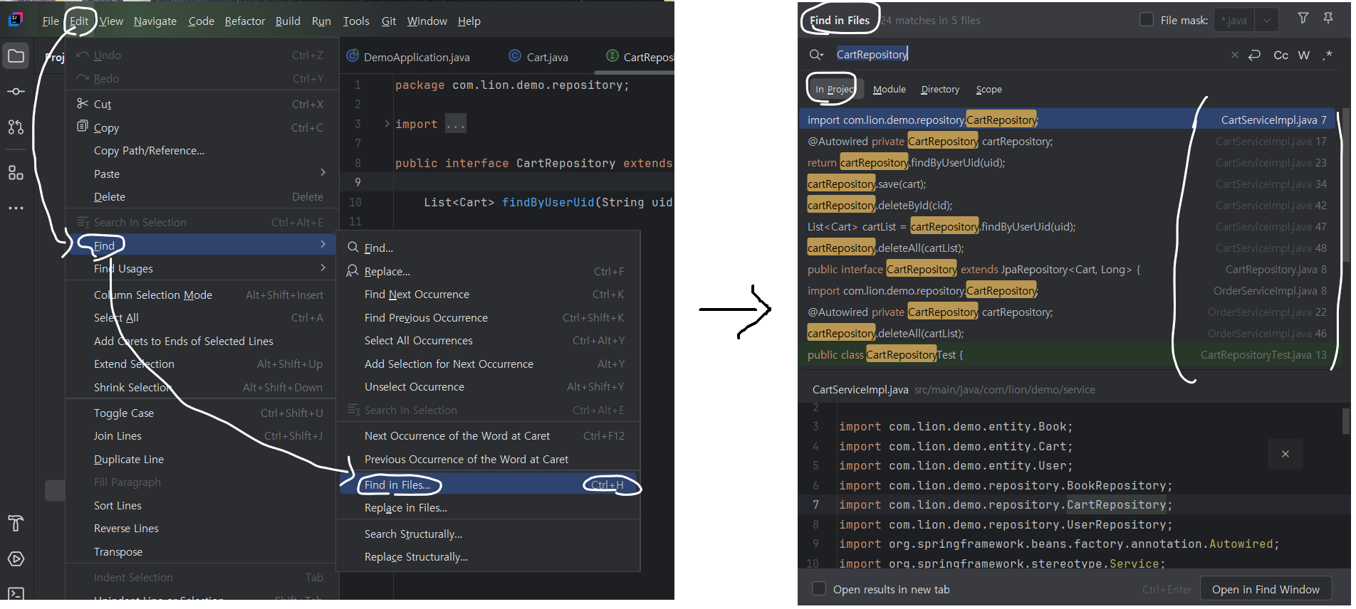 프로젝트 전체에서 특정 문자열 검색