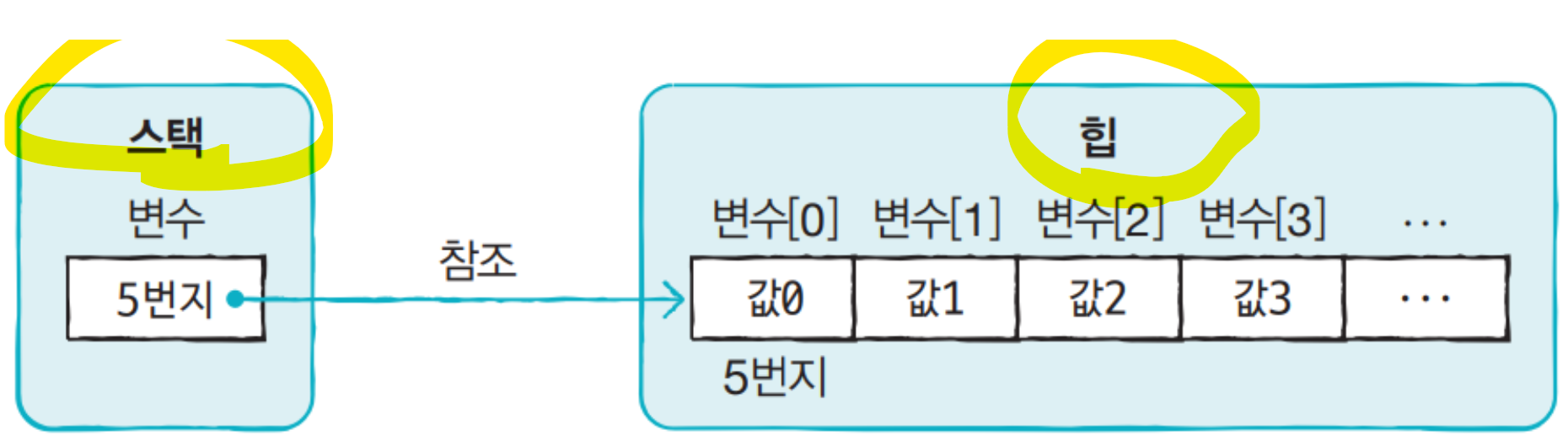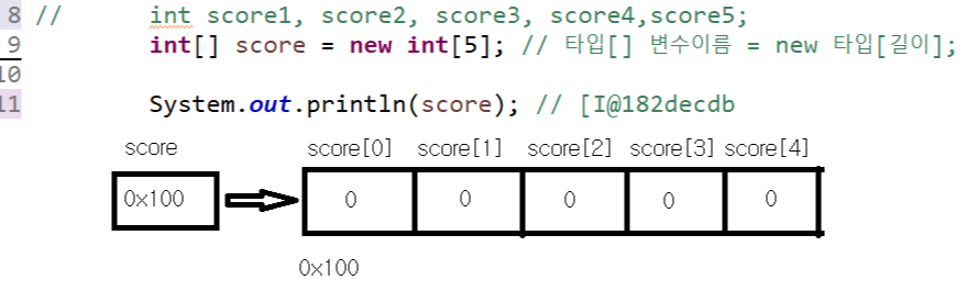 ( 한 번 생성된 배열은 길이를 늘리거나 줄일 수 없다. )