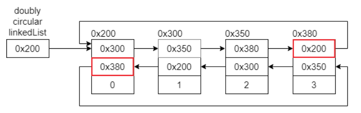 양방향 원형 연결 리스트( doubly circular linked list )