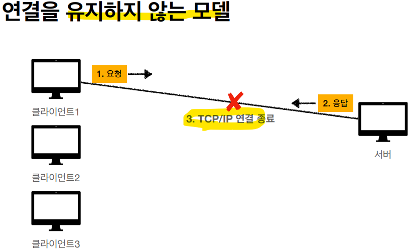 서버가 연결 유지X > 연결유지하는데 필요한 자원 아낄수 있음
