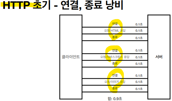 • 지금은 HTTP 지속 연결(Persistent Connections)로 문제 해결, HTTP/2, HTTP/3에서 더 많은 최적화가 됨