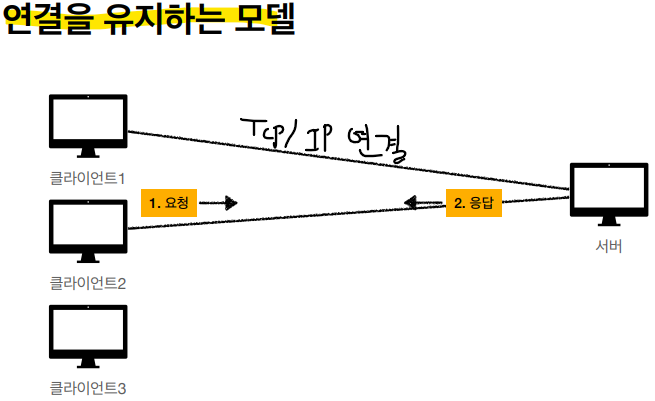 • HTTP는 기본이 연결을 유지하지 않는 모델