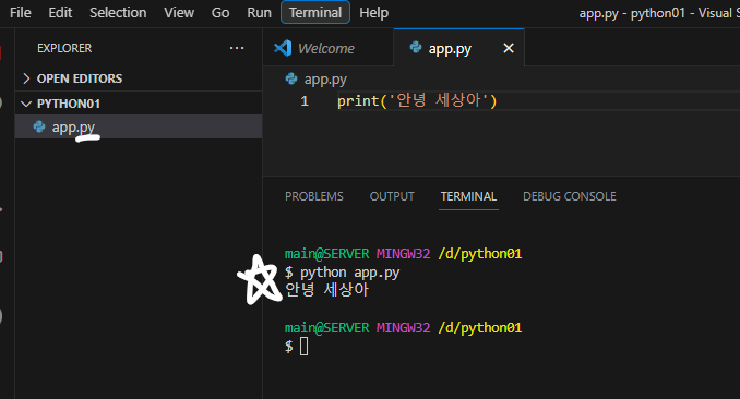 터미널창 열어서 , ' python (실행할 파일명) '