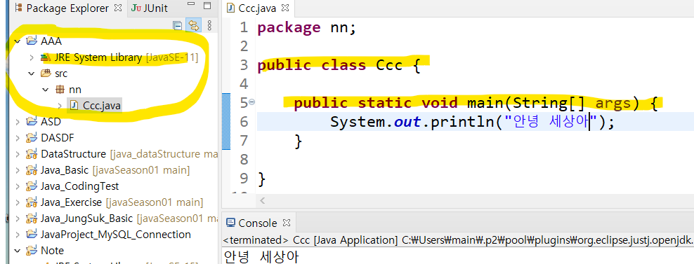 class 클래스이름 { } 안에 , main메소드 { } 안에 print문을 써야하는 java와는 확연한 차이