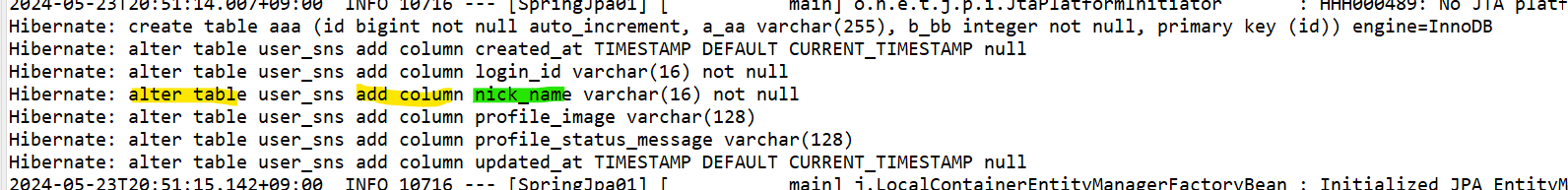 DB에선 아래와같이 nick_name 칼럼을 만들어버림( 기존에 정상적으로 있던이름은 nickName 였음 )