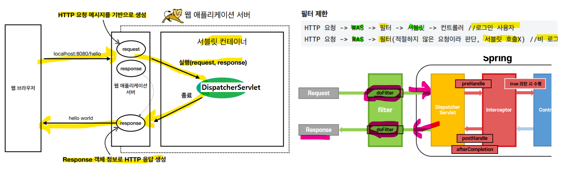 서블릿Filter : 요청, 응답에 엄청 앞쪽에 포지션