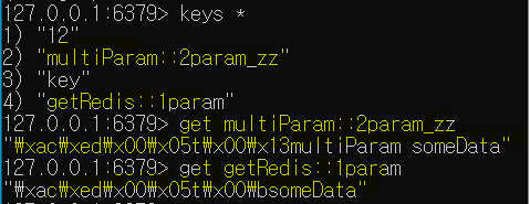 key값 multiParam::2param_zz , getRedis::1param 이 생겼고, 그 value값들은
