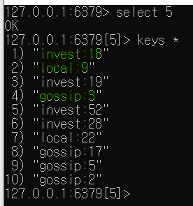 아래는 테스트후 Redis에 생긴 데이터들