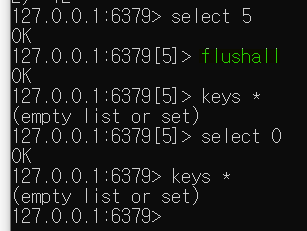 flushdb : 현재 위치한 db의 데이터만 다 삭제됨