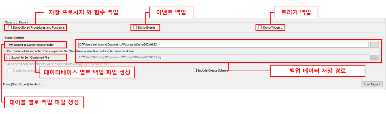 Data Export 에서 세부 항목들