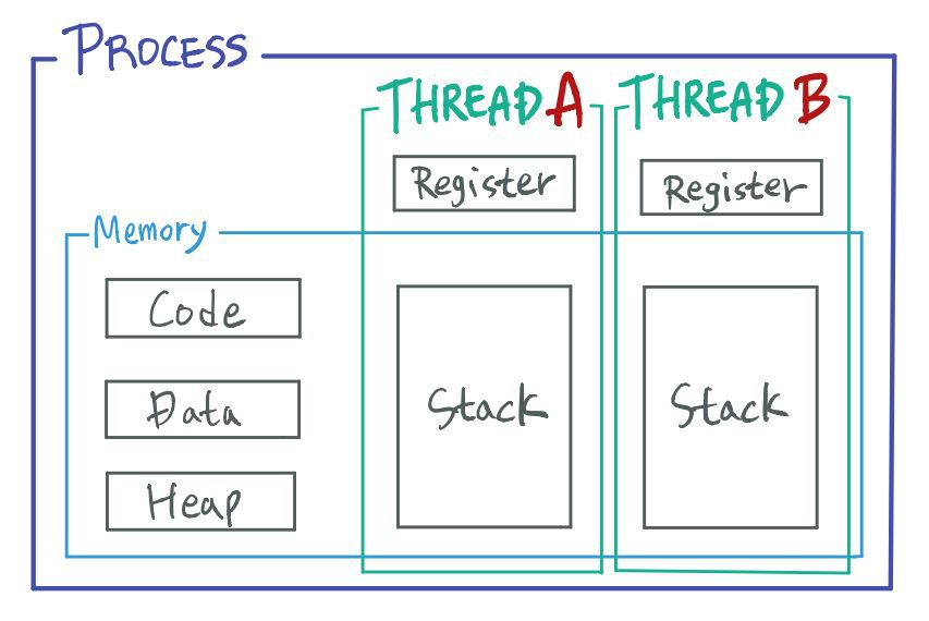 stack은 스레드 갯수마다 각각 생성되지만, heap은 몇개의 스레드가 존재하든 상관없이 단 하나의 heap 영역만 존재