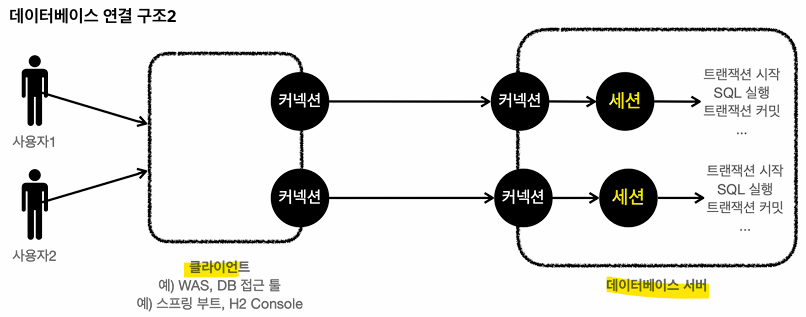 * 데이터베이스 서버에 연결을 요청하고 커넥션을 맺으면, 데이터베이스 서버는 내부에 세션이라는 것을 만든다.