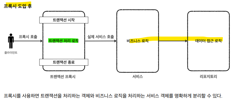 스프링의 트랜잭션AOP는 이 애노테이션을 인식해서 트랜잭션 프록시를 적용해준다.