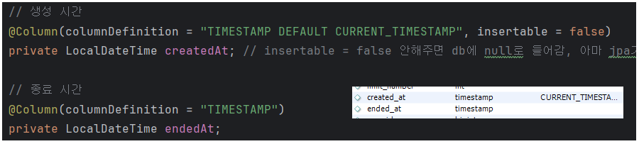 db에서 데이터타입 timestamp로 하기위해 따로 코드 추가해줘야함