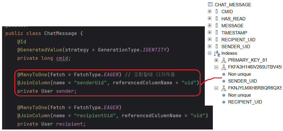 @JoinColumn(name = "uid") 다른 Entity