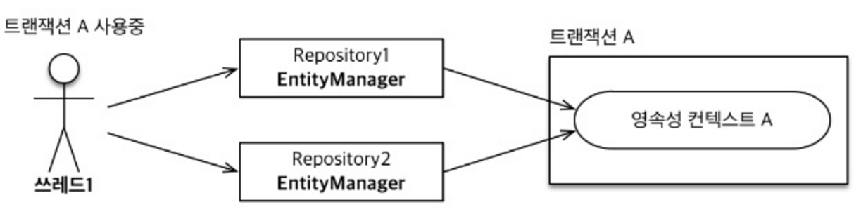 트랜잭션이 같으면, 같은 영속성 컨텍스트를 사용한다.