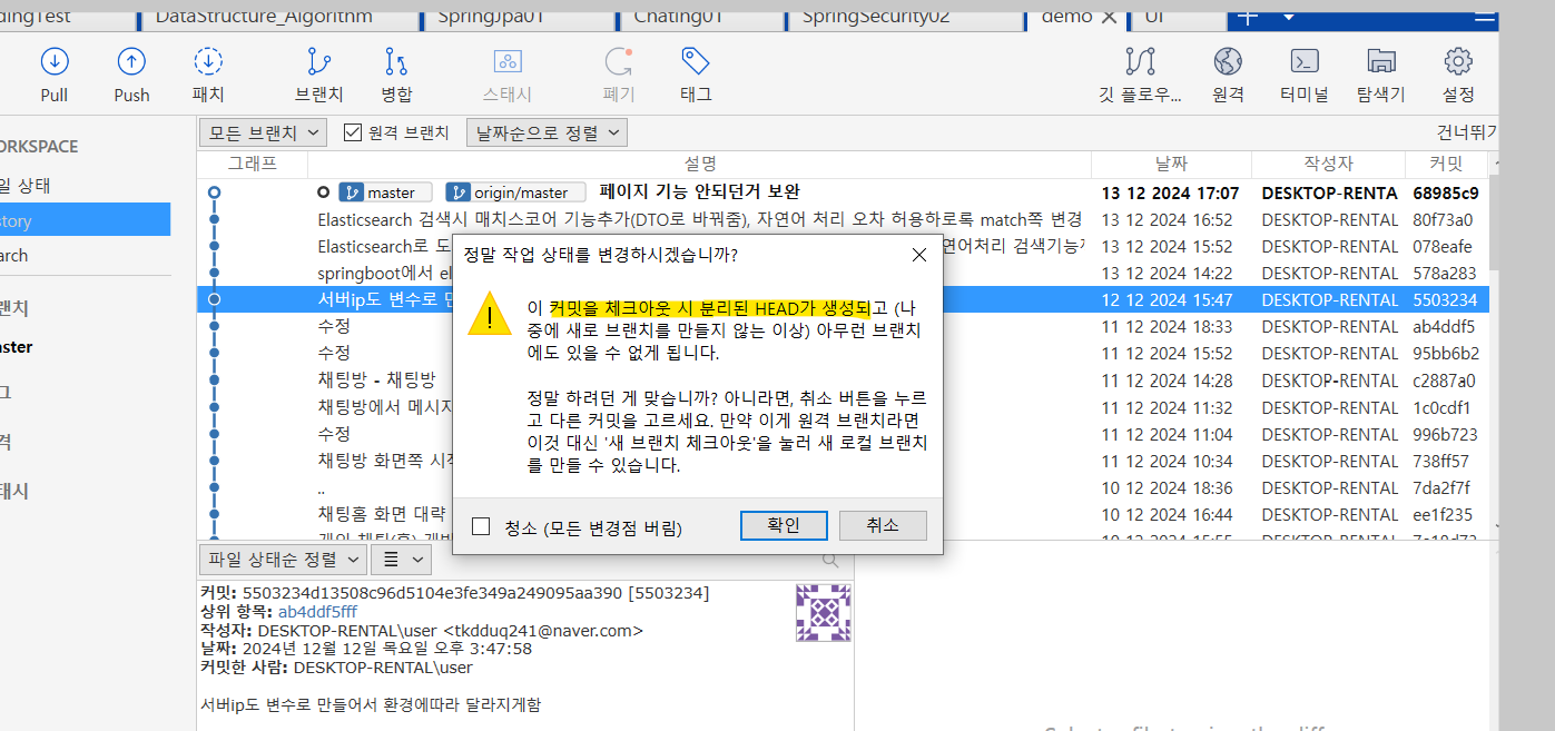 특정 커밋으로 체크아웃