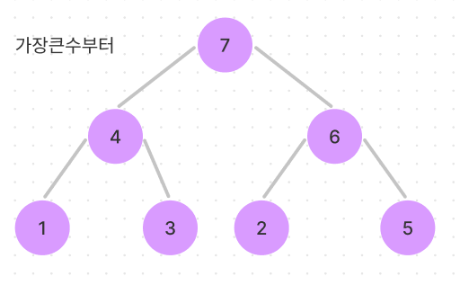 1 ~ 7 을 PriorityQueue에 순서대로 넣으면, Heap에 의해